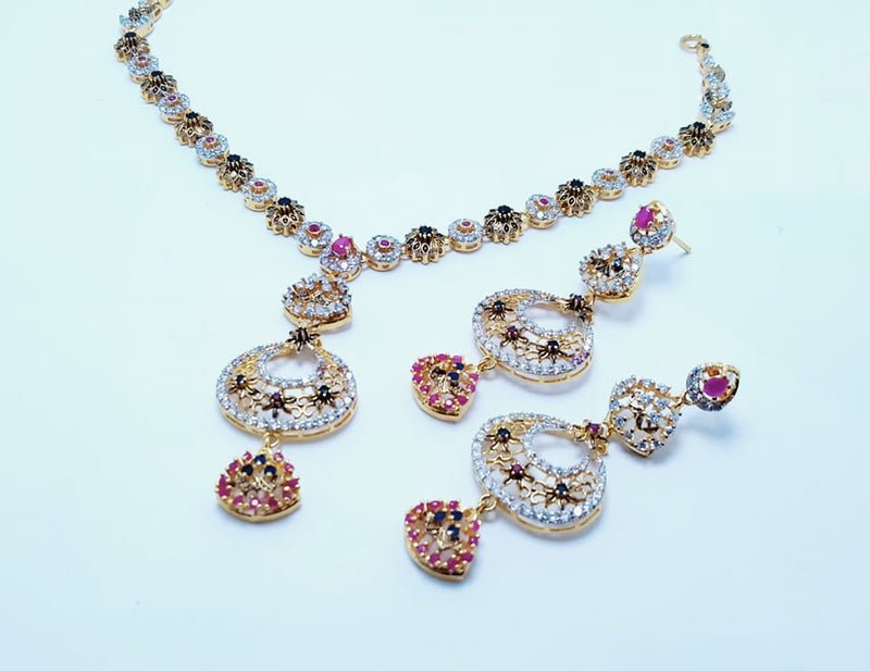 This necklace set features a combination of 925 silver and colored zircons, creating a stunning and sophisticated look. With its gold plated finish, this set exudes luxury and elegance. Perfect for special occasions or as a gift for someone you love.