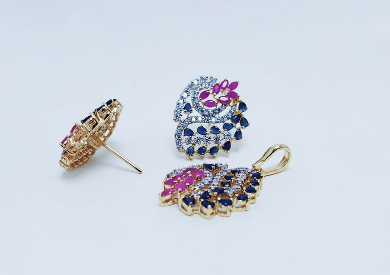Gold Plated Pendant Set with blue Sapphire and Chetum Zircons. (925 Silver)