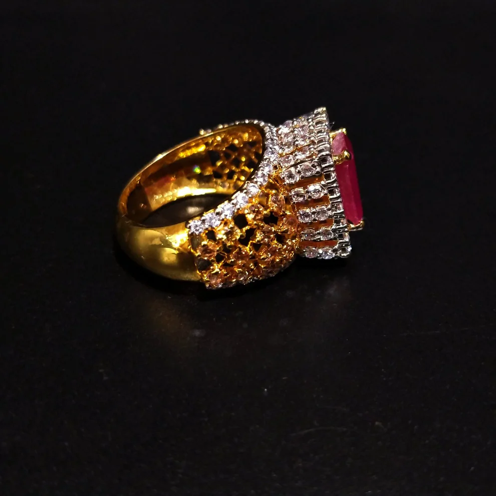Gold Plated Ring With Zircons & Red chetam 925 Silver.