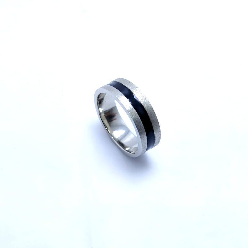 Hand Made Fancy Men”s Ring with Black Meena and White Gold Plated. (925 Silver)