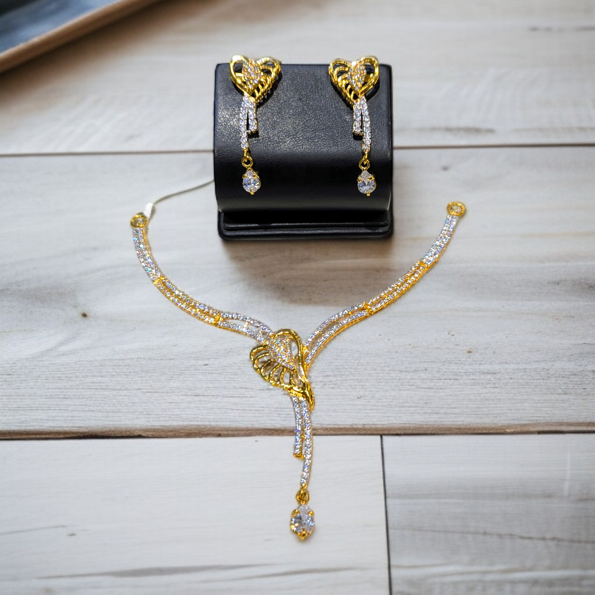 Embrace modern elegance with this sleek zircon necklace set. Its minimalist design highlights the pure sparkle of the zircons, beautifully set on 925 sterling silver with a lustrous gold plating. Perfect for effortless style, whether dressed up or down.