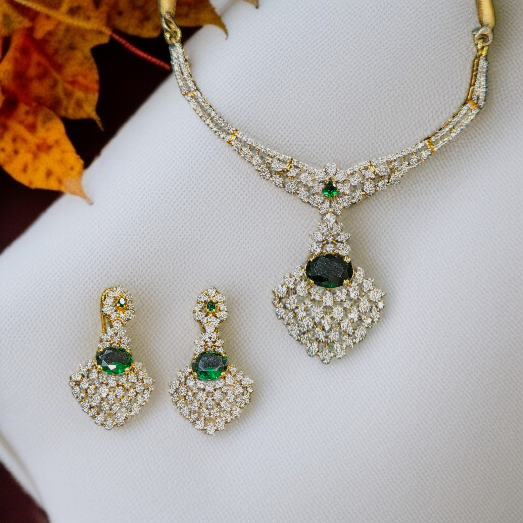 Necklace Set With Emerald & Zircons