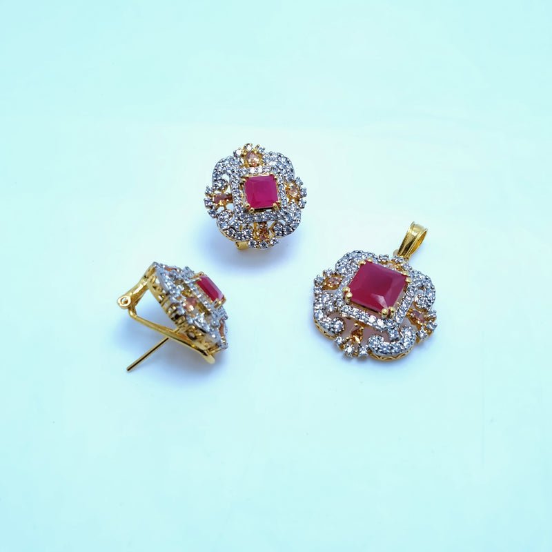 pendent Set Chetum Stone With American Zircons Silver with Gold Plated