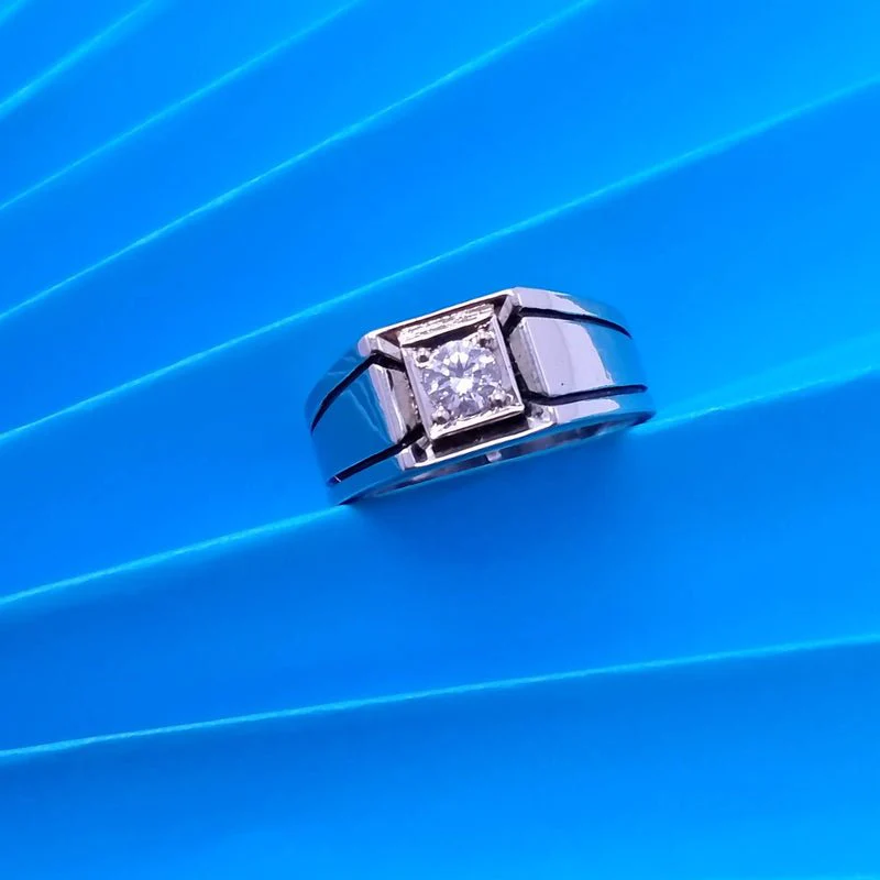Silver hand made fancy Men?s ring with Qubic Zircons and white gold plated.(925 Silver)
