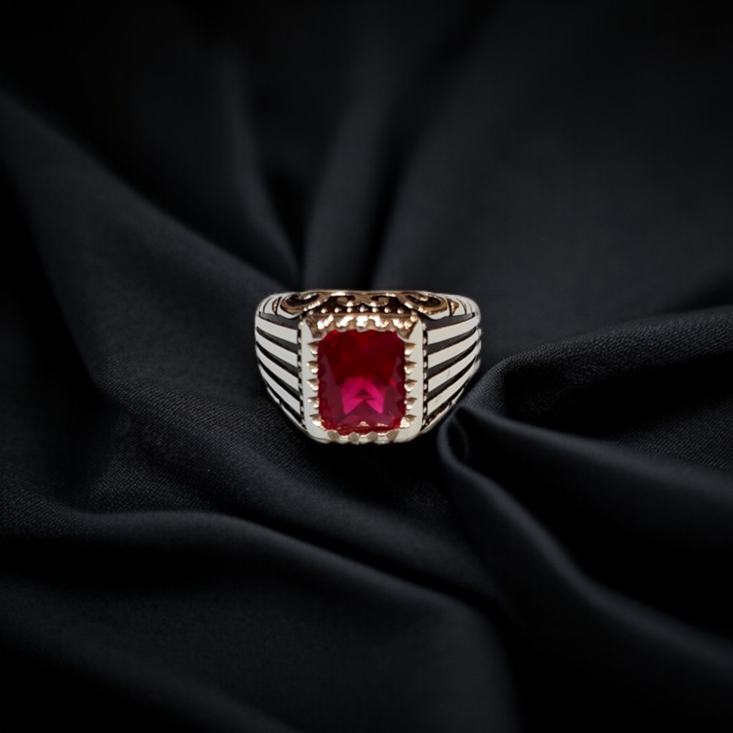 Silver Ring With Red Zircon