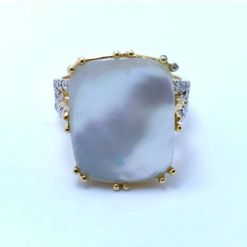 Silver Ring with Super Quality Mother of Pearl and Zircons. (925 Silver)