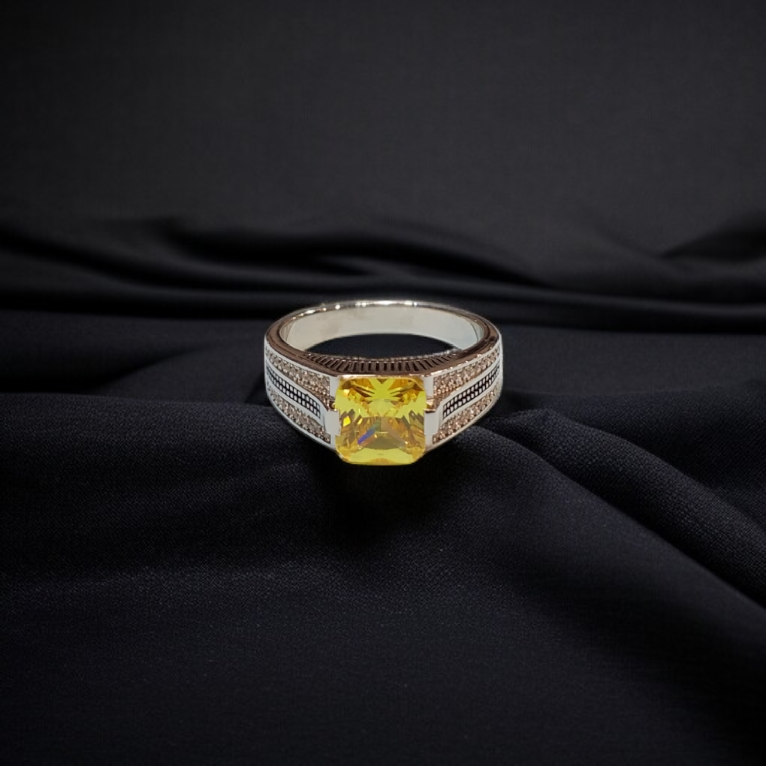 Brighten your style with this silver ring, featuring a captivating yellow zircon. Its radiant, golden sparkle offers a cheerful yet sophisticated accent, perfect for adding a vibrant touch to any look.