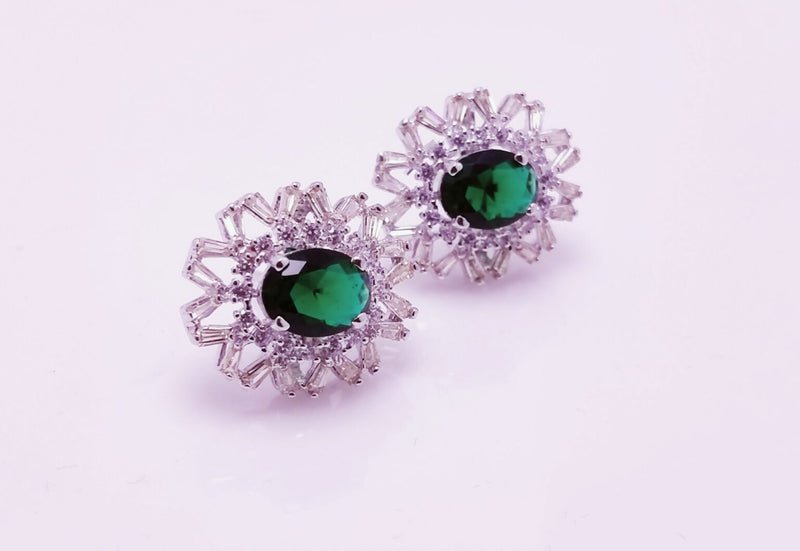 Elevate your style with these Gold Plated Tops featuring striking green stones and sparkling zircons. Made with 925 silver, these earrings exude elegance and sophistication. Upgrade any outfit with this stunning pair and make a statement that will leave everyone in awe.