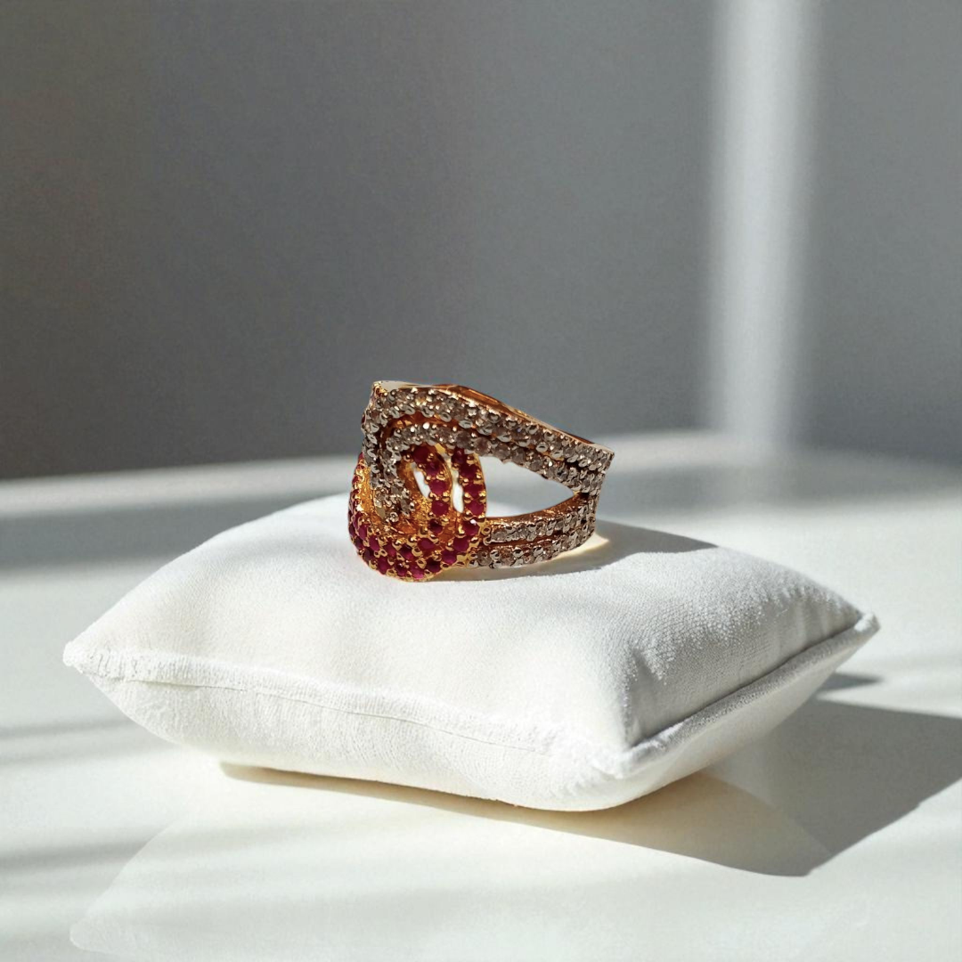 Unveil a world of elegance and vibrant allure with this exquisite Ruby and Zircon Ring. Meticulously crafted from high-quality 925 sterling silver and lavishly plated with radiant gold, this ring is a testament to sophisticated design and timeless beauty. It’s the perfect accessory to add a touch of luxury and sparkle to any ensemble.