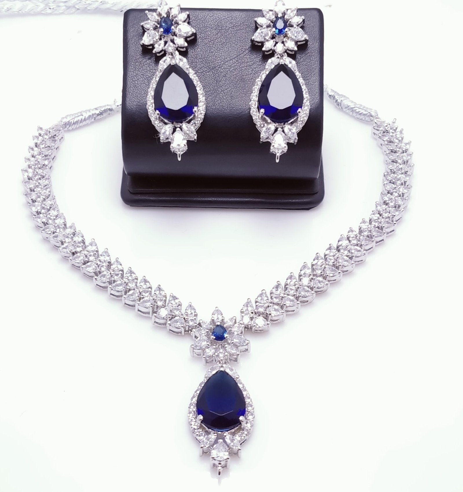 White gold plated Necklace Set With Blue Sapphire and zircons 925 Silver