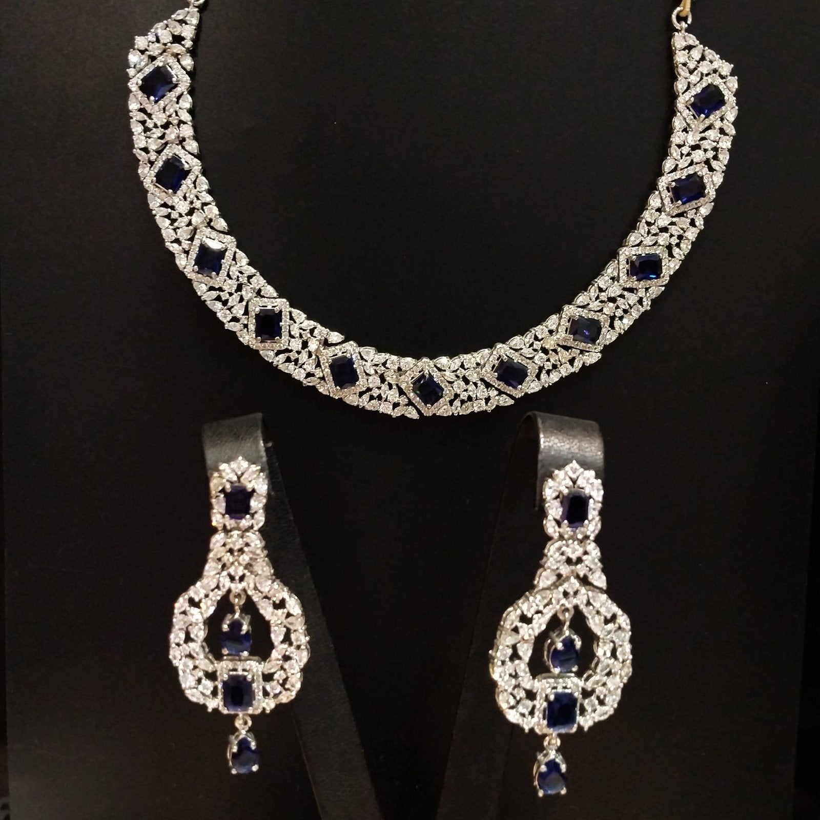 White gold plated Necklace Set With blue sapphire and Zircons 925 Silver